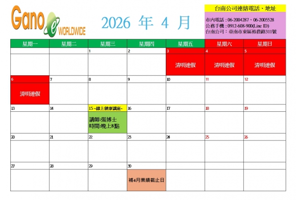 ► ~2026年4月行事曆~