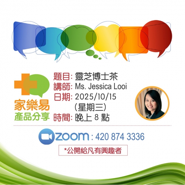 ► 2025年10月15日(三)Ms.Jessica Looi線上健康講座