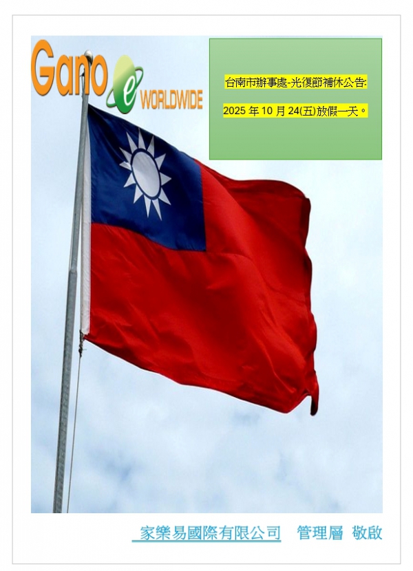 ► 台南公司2025年10月24日休假~(補10/25日光復節)