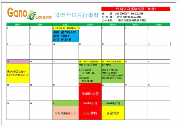 ► ~2025年12月行事曆~